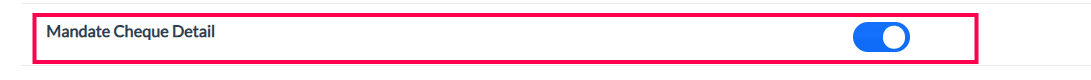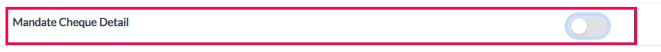 Note: If the Mandate Cheque Details option is disabled, the Cheque Date will be saved as the current date (transaction date) by default.