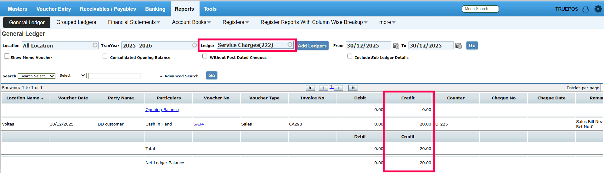 2. General Ledger In accounts and finance you can track the Service Charges Bill in Service Charges(222) Ledger.