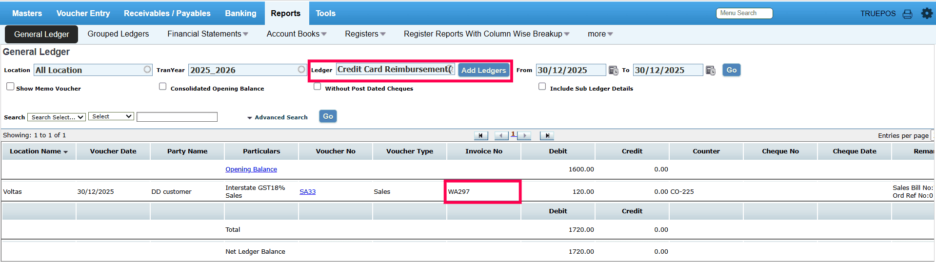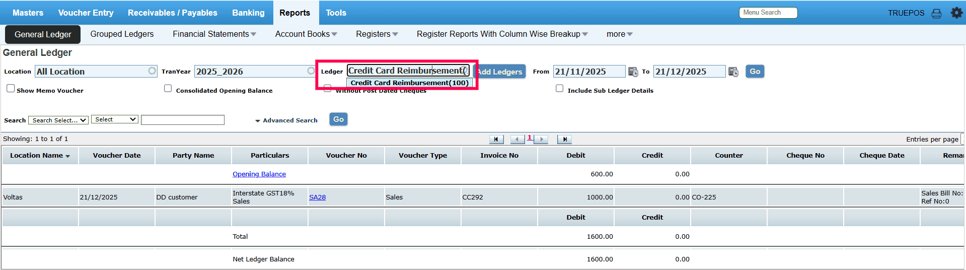2. General Ledger In accounts and finance you can track the Card Bill in Credit Card Reimbursement Ledger.