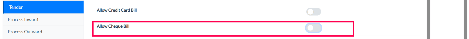 Purpose - This option enables cheque payments during billing. When the checkbox is selected, the Cheque option appears on the tender screen, allowing users to record cheque payment details. It helps businesses accept cheque payments and maintain proper records for tracking and reconciliation.