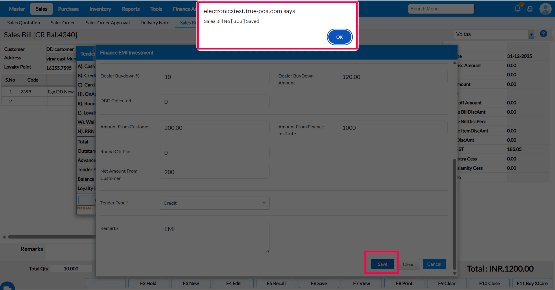 5. Go to Sales ->Sales bill and make a Bill and click on Save button.
