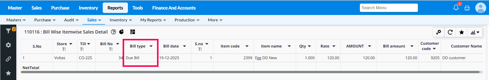 Report Path - Report → Sales → Sales → Billwise Itemwise Sales Detail