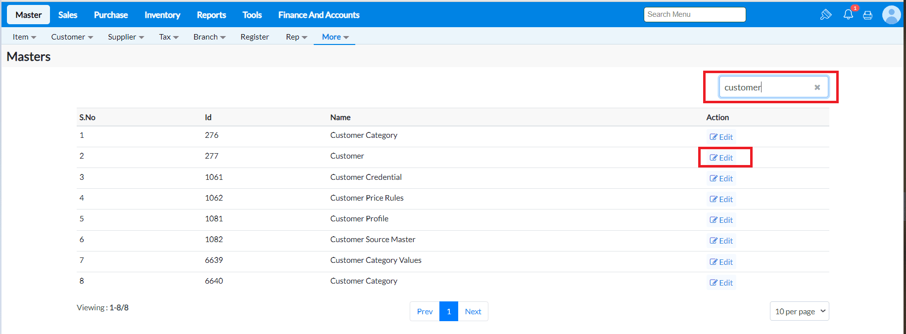 Steps to Enable/Disable the Edit Option in Master Screens