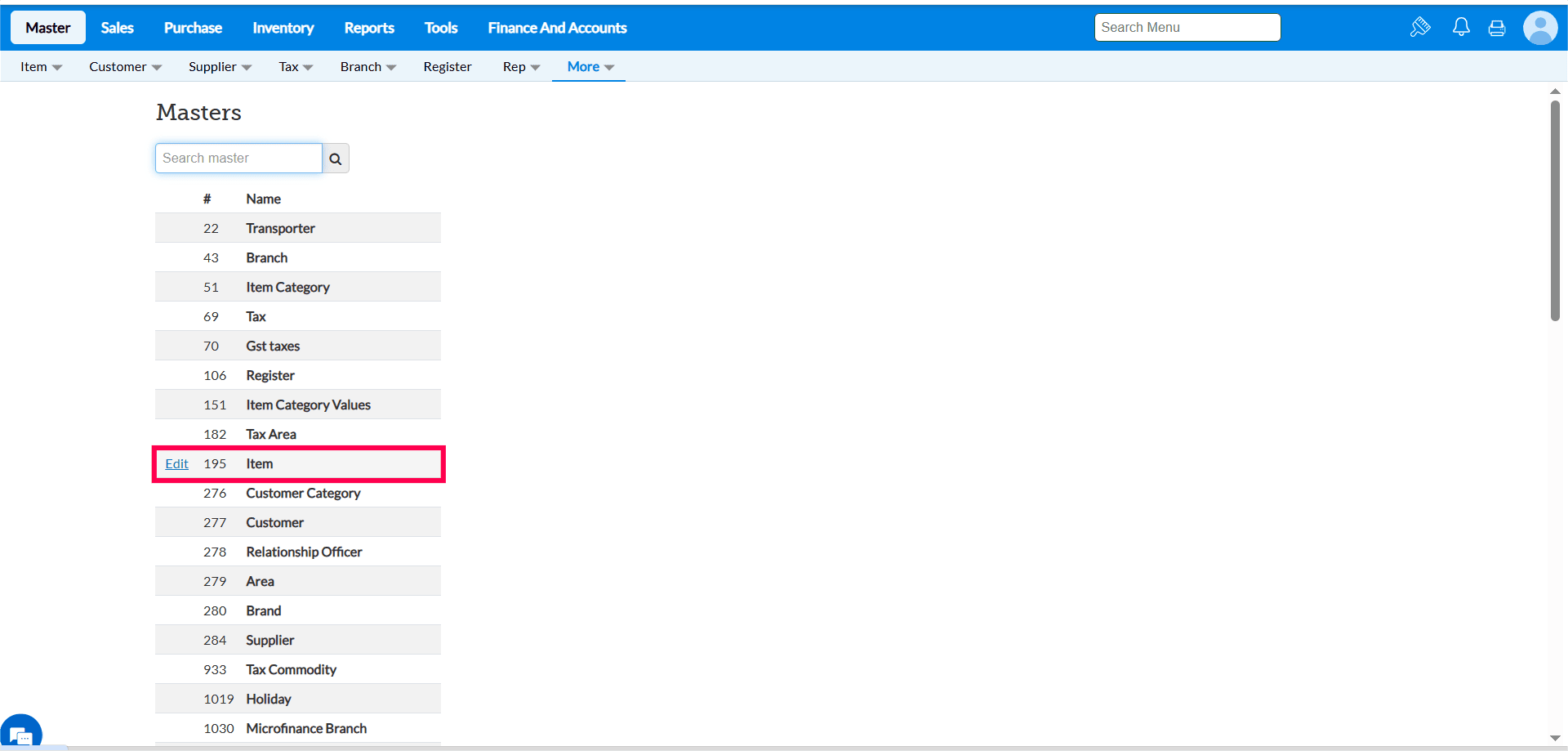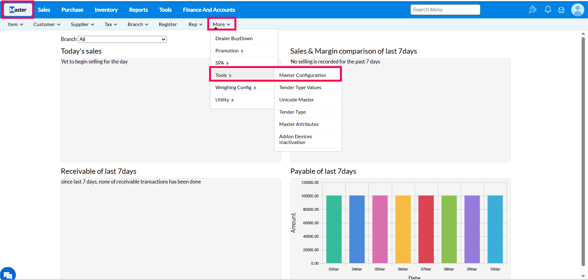 Menu Access: Click Master > More > Tools > Master Configuration