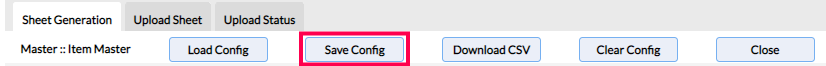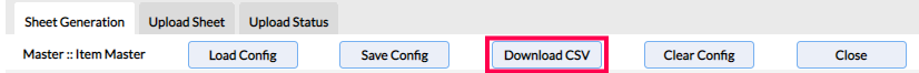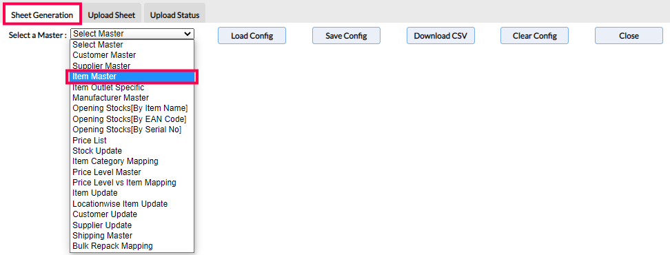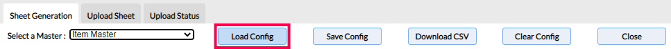 Step 3: Sheet Generation > Select a Master > Item Master (from the drop-down)