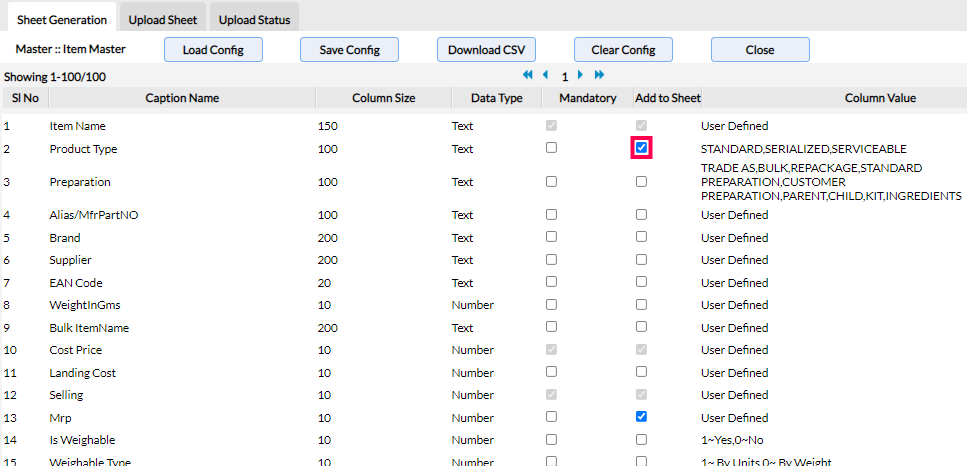 Step 5: Tick the check-box to enable mandatory or discretionary options on the upload sheet