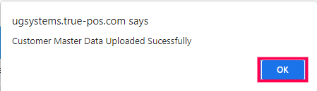 Step 9: A confirmatory message conveying the successful upload of Customer data appears. Click OK to proceed.