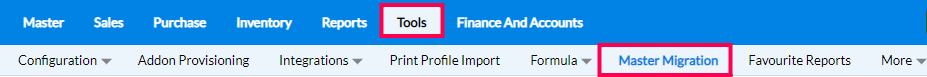 Step 1: In the main tab of RetailEasy on-cloud, click on Tools > Master Migration.