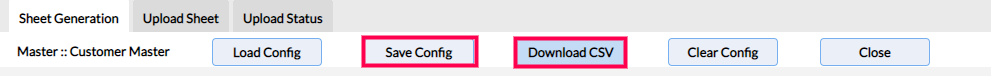 Step 4: Click on Save Config. Now the template of the sheet has been saved. Click on Download CSV to download the template file.