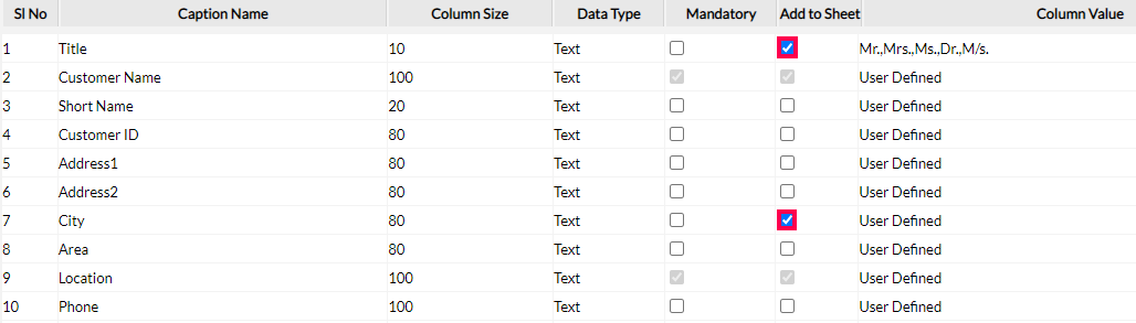 Step 6: Enter the Customer details into the sheet.