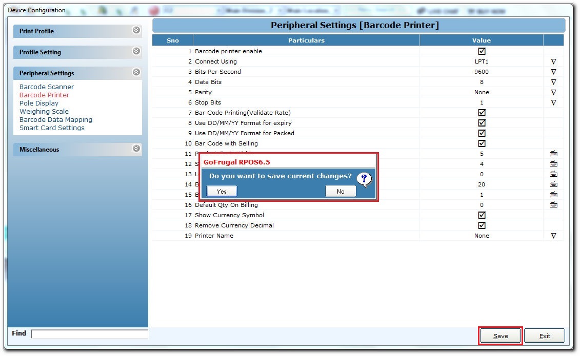 Note: On enabling Bar Code Printing(Validate Rate), it validates the rate before generating the barcode printout.