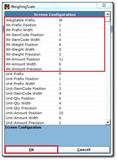 - In the Wt-Weight Position field, enter the position of the weight in the barcode print. For example - 6.