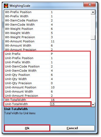 - In the Unit-Qty Width field, enter the width of the weight in the barcode print. For example - 4.