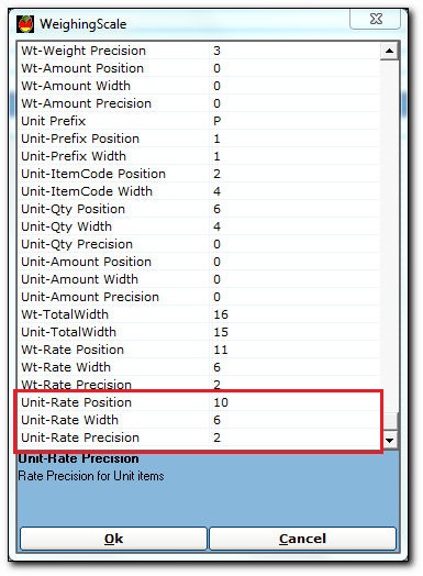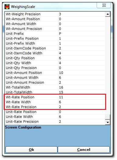 - In the Wt-Rate Position field, enter the position of rate in the barcode print. For Example - 11.