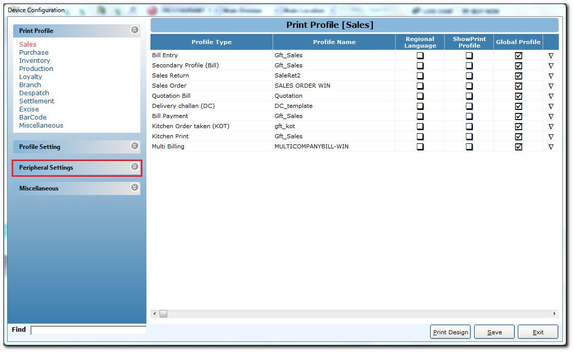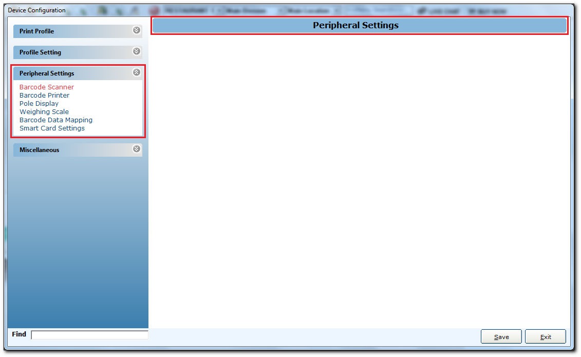 The peripheral settings refers to peripheral device settings. These are those devices that are connected to a product to add functionalities. The peripheral device in POS can be Barcode Scanner, Barcode Printer, Pole Display, Weight Scale, Barcode Data Mapping, etc.