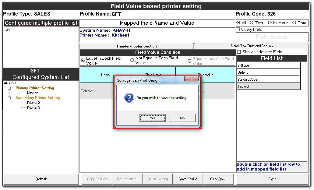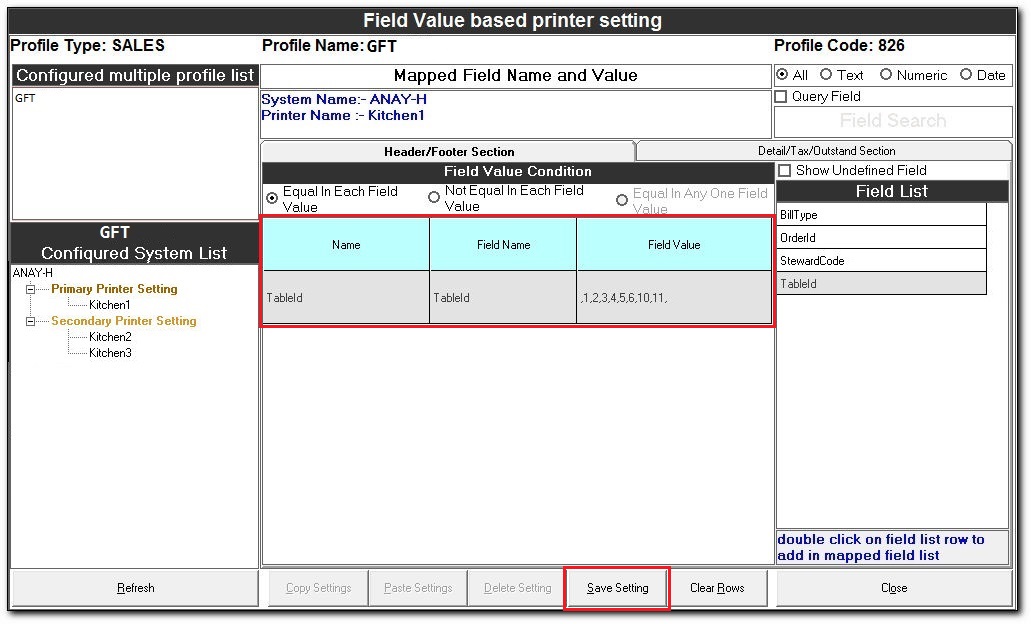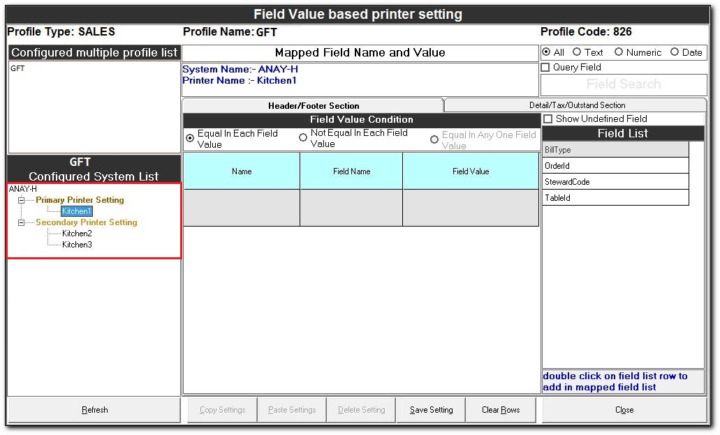 The Field Value based printer setting is used to route the documents to the respective printers in a kitchen based on the field values.