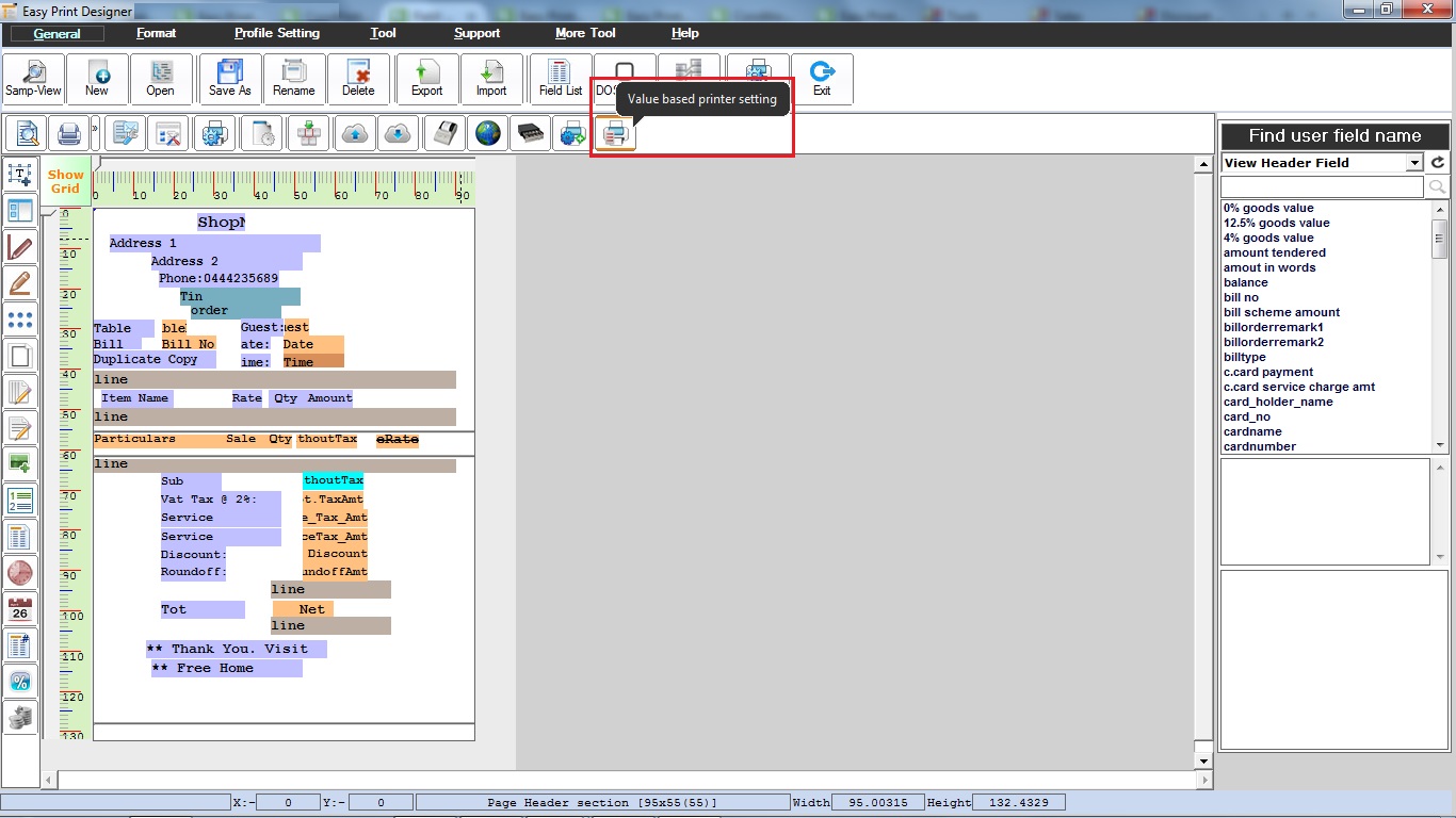- In the Easy Print Designer screen, click Value based printer setting.