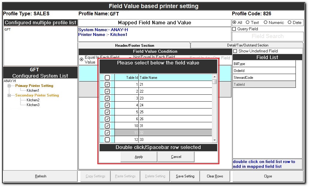 - Please follow the step 2 to 10 for configuring the table for other printers (Secondary Printers).