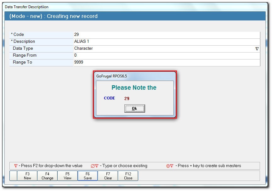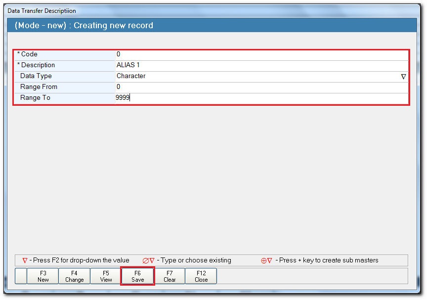 - The field Range From and Range To is automatically displayed based on the Description.