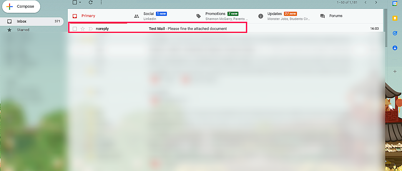 Note: Before configuring the actual reports, and transaction you can do a test email to check whether the alignment, text, content etc are proper. If not you can check and clear it, then send it again. Also you can check if the sending/receiving is happening correctly or not.
