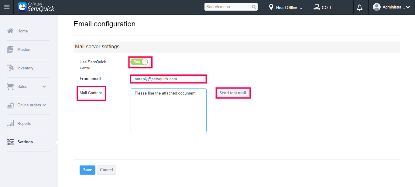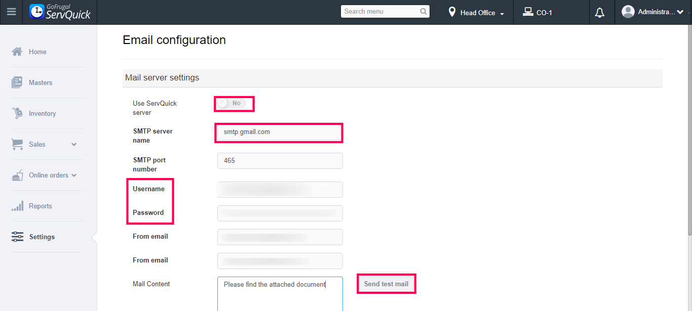 Step3: Enter the required details like from email, sample mail content, in the Mail server settings