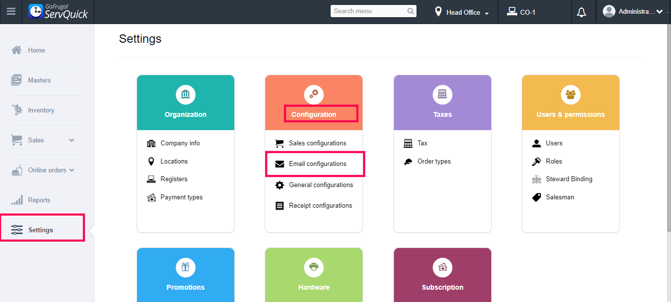 Step1: Go to Settings, under Configurations you can select elect Email Configurations