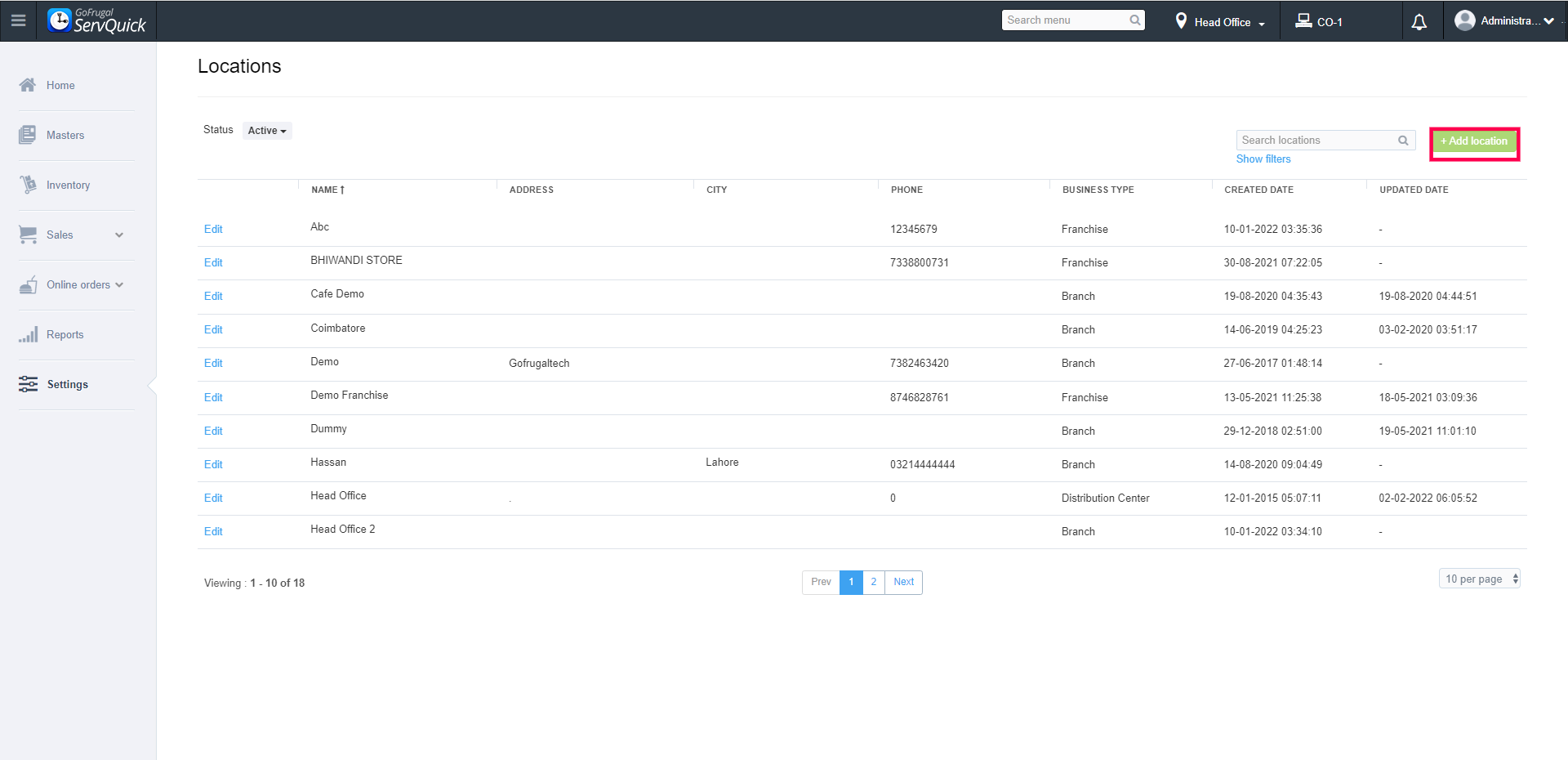 Step1: Click on Add Location
