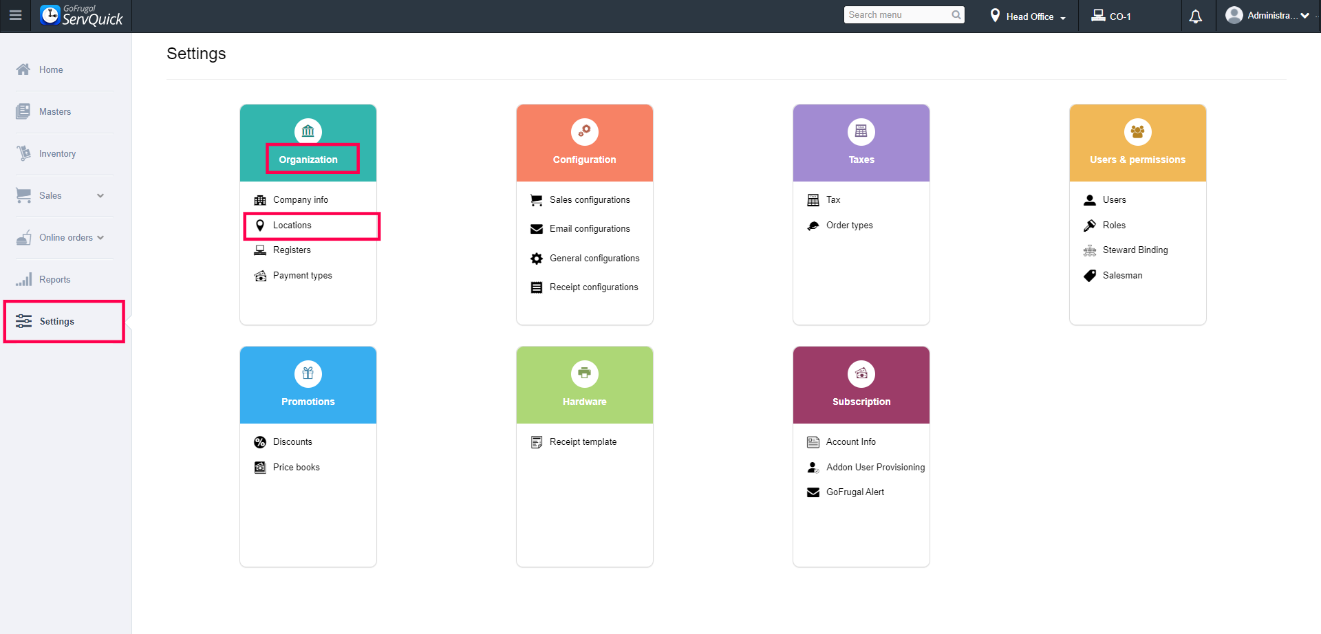 Step1: Go to Settings, under Organization select the Location option
