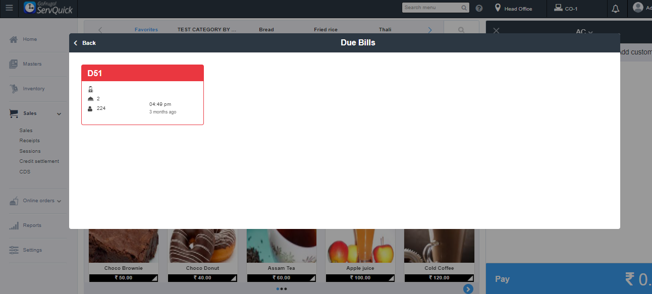 In Tables, click on due bills to view the pending payments.