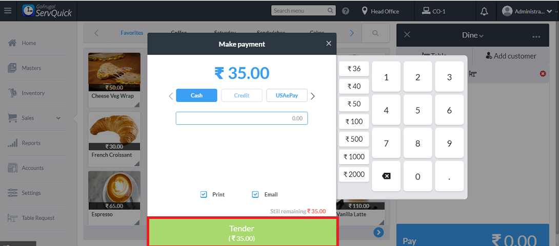 Thus the payment can be made successful without any contact with the customer using the Contact-less billing feature in ServQuick.
