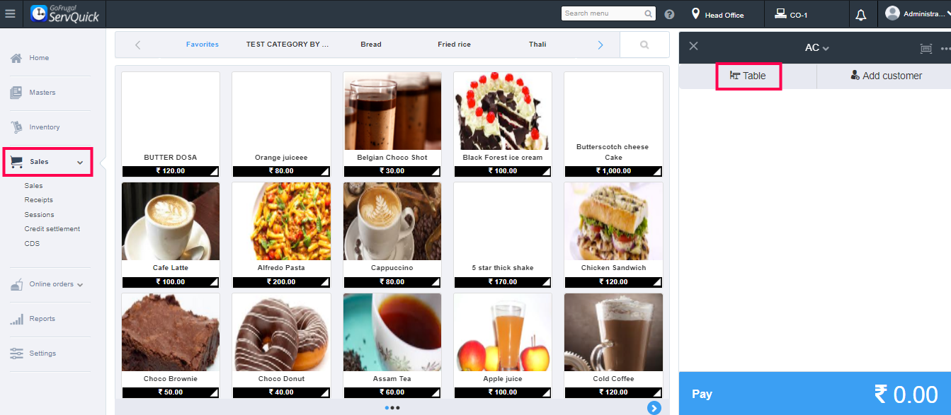 This due bill can be processed from the Sales screen. On the Sales screen and click on Table.