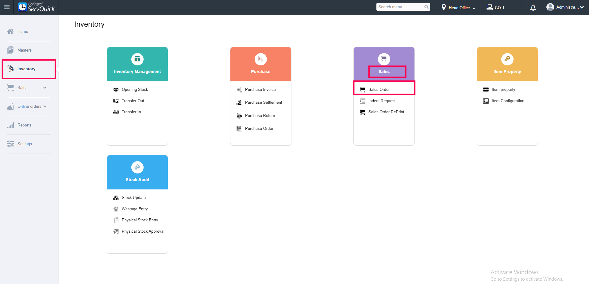 Step1: Go to Inventory, under Sales select Sales Order