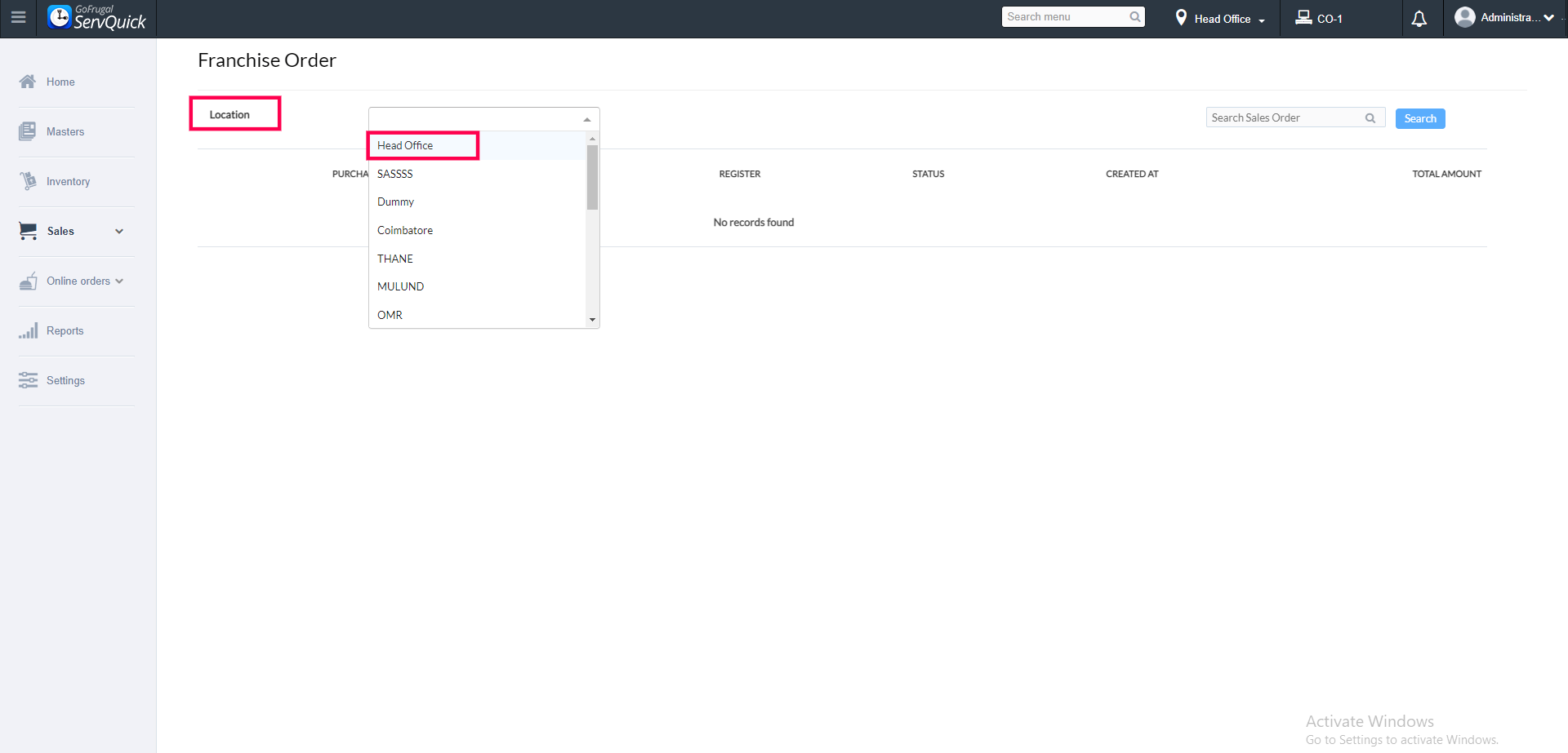 Steps to convert sales order from franchise outlet in ServQuick