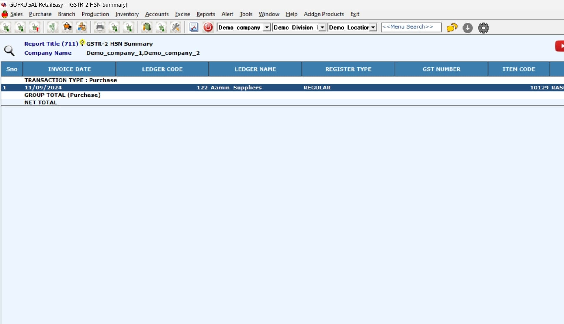 For GSTR2, enter Report ID 711 (GSTR2 HSN Summary Report).