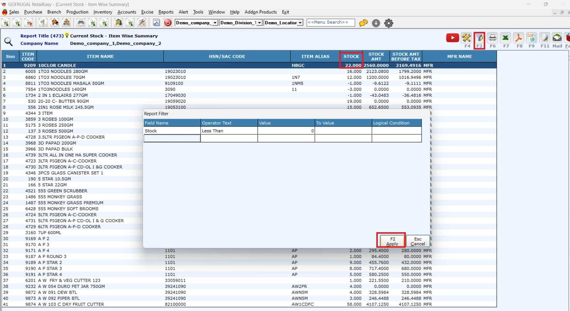 FAQ4: How do I check the negative stock report using filters in RPOS 6.5?