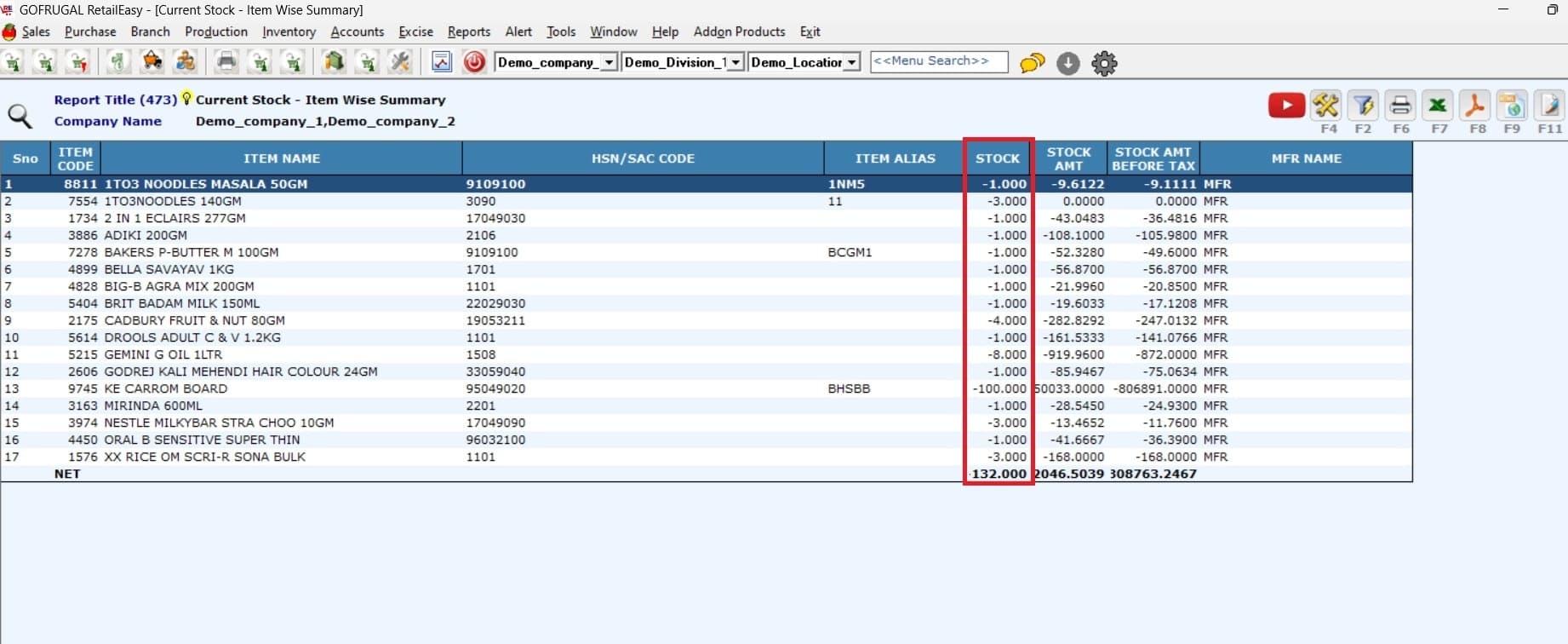Navigate to Report ID: Current Stock Report - Item Wise Summary.