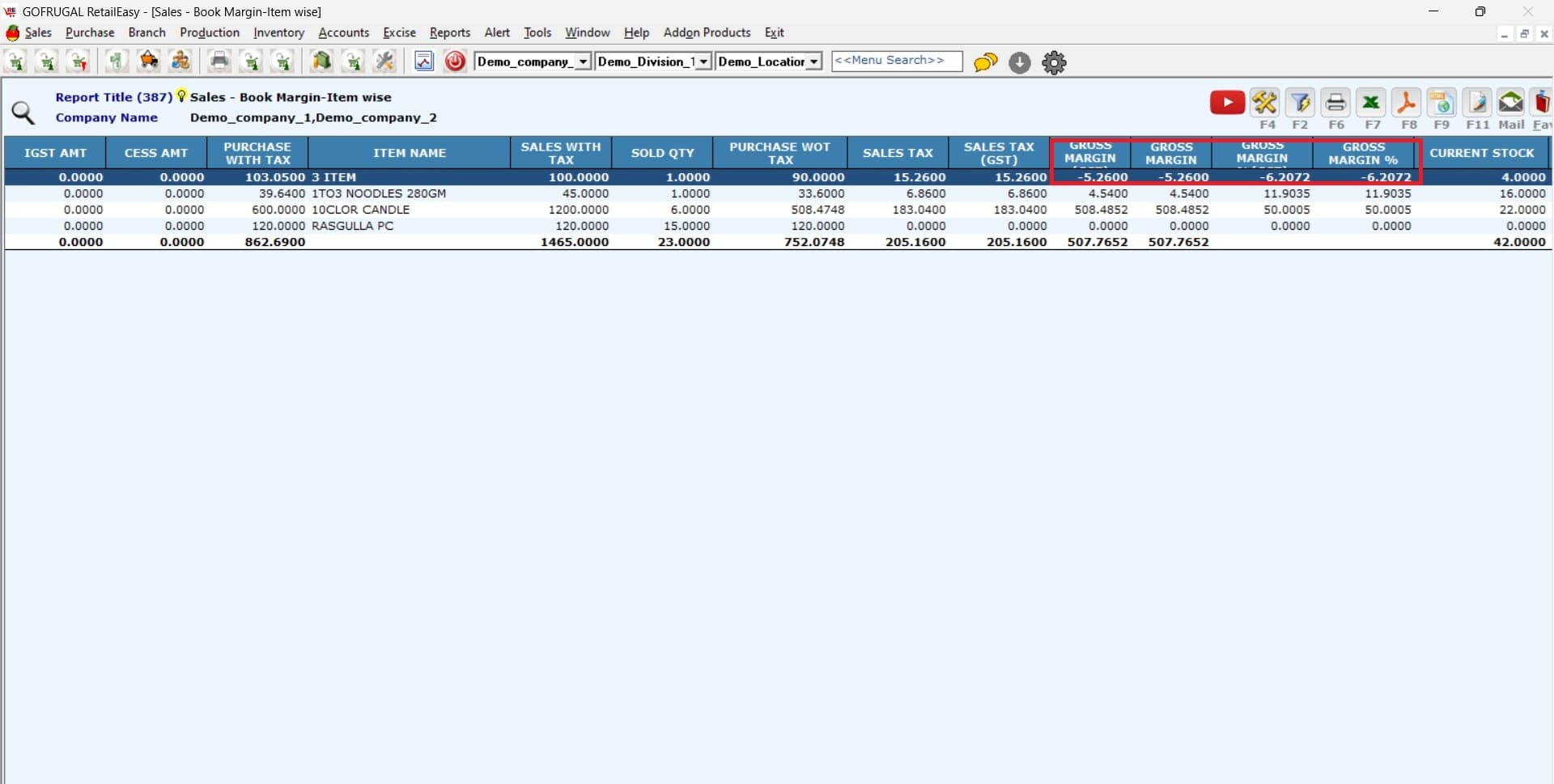 FAQ 3: How can I check negative margin items on an item-wise and month-wise basis in RPOS 6.5?