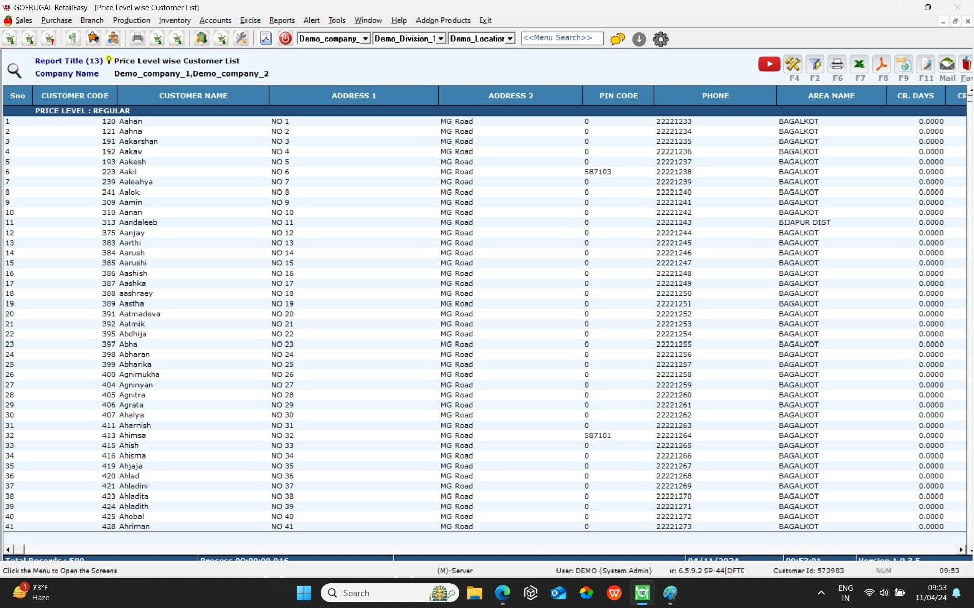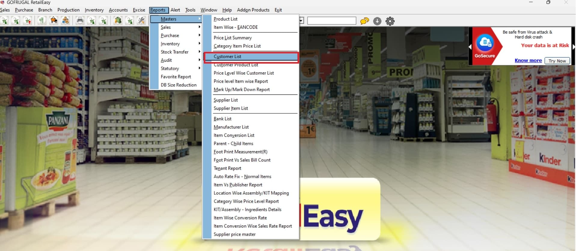 Answer: In the Reports section, go to "Master" and select "Customer List Report" to view the list of all customers.