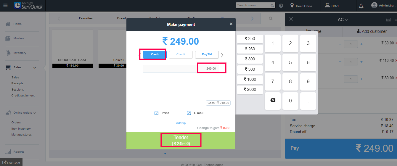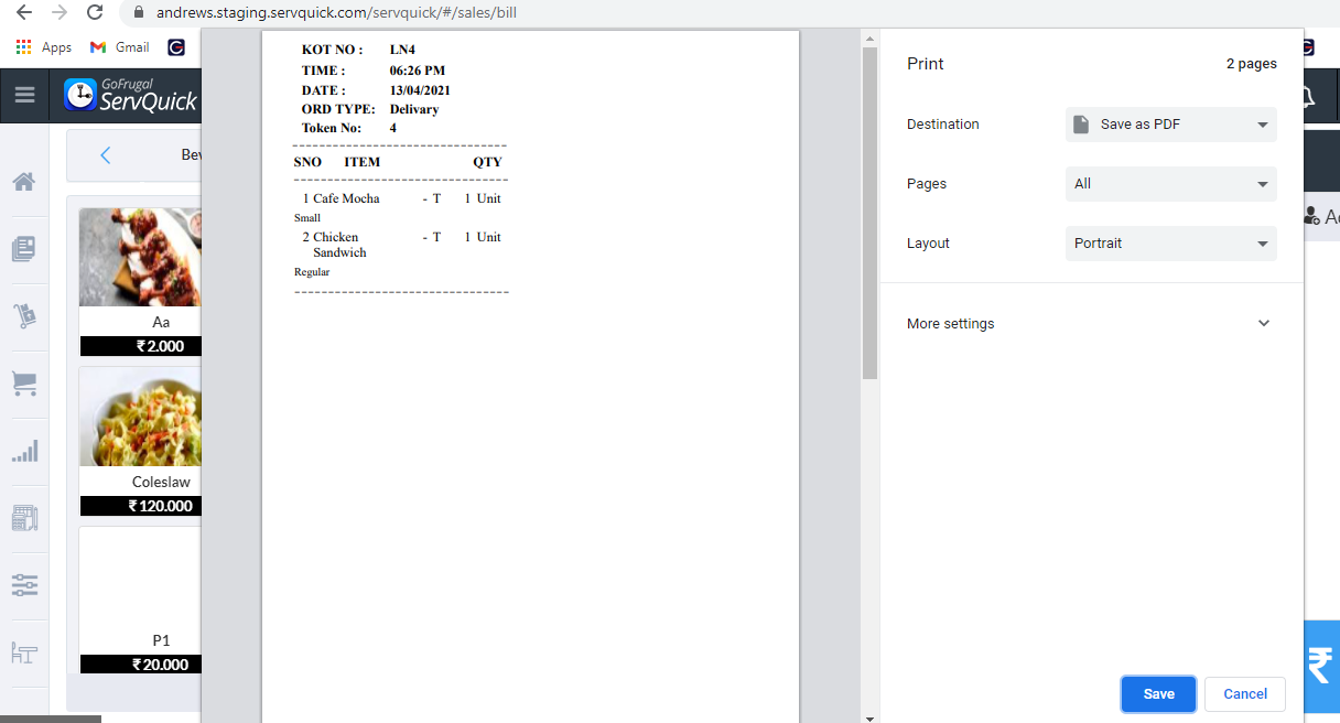 Now, different KOT is printed at different kitchens and the consolidated KOT is printed at the sales counter.