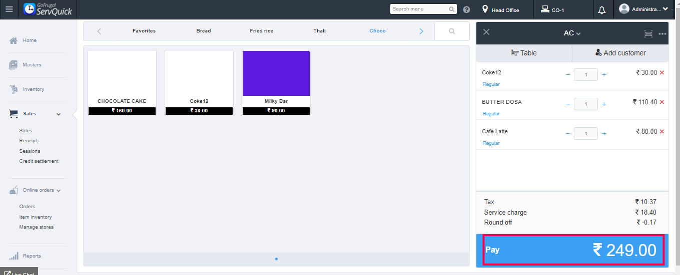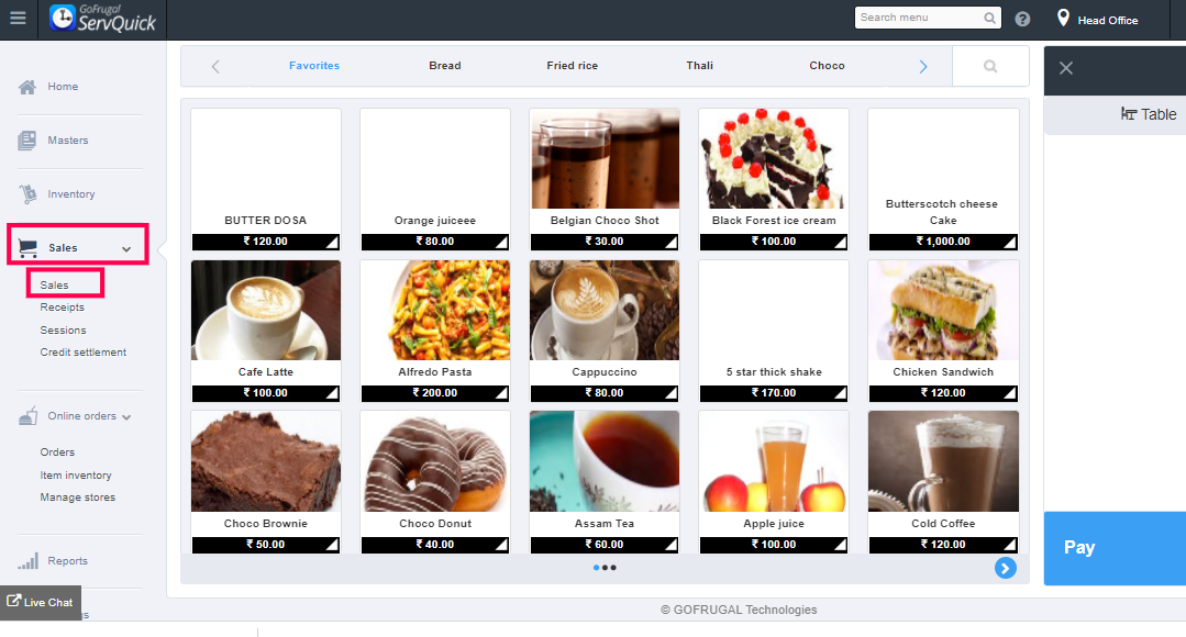 Select the items and add them to the cart. Click on Pay to redirect to the Payment page.