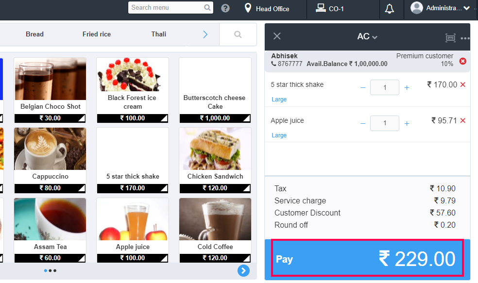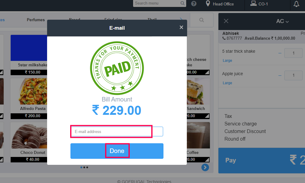 Thus, the sales bill creation is made easy with GoFrugal ServQuick.