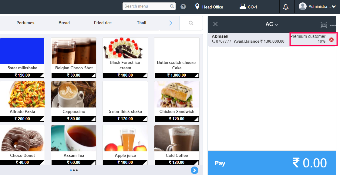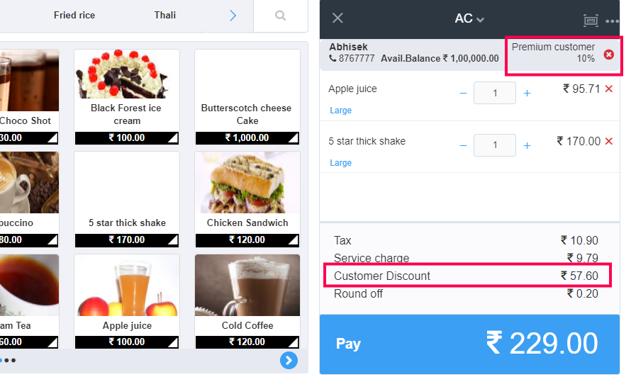 If there is a discount for a customer belonging to a customer group, then that discount will be applied to the bill. To know more about Customer Groups and discounts, click here.