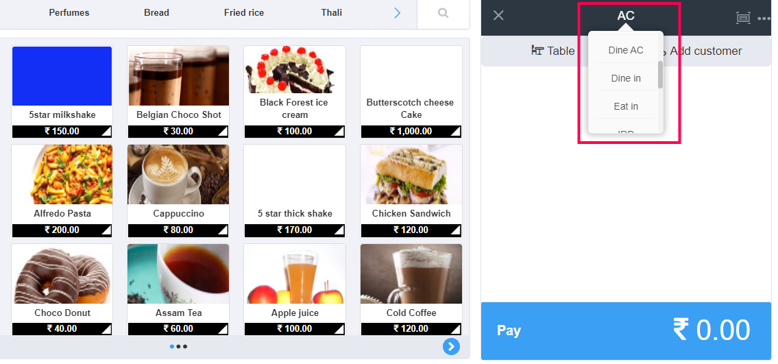 You can choose customers based on order type such as AC, Eat-In, Dine-in, etc.