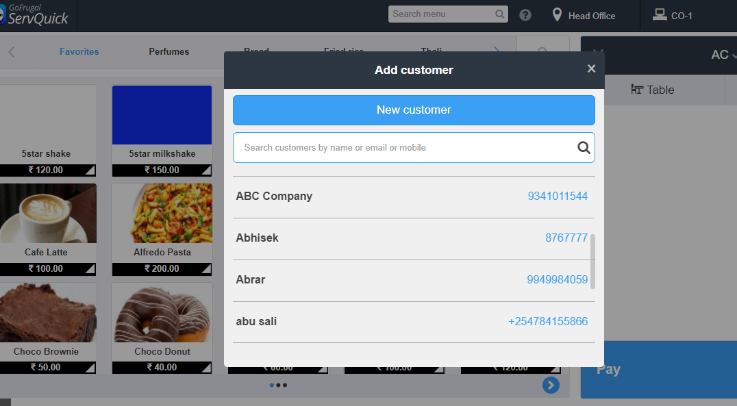 Choose the customers for whom the bill is to be prepared. The customers can be existing or new. To add customers, click on Add Customer.