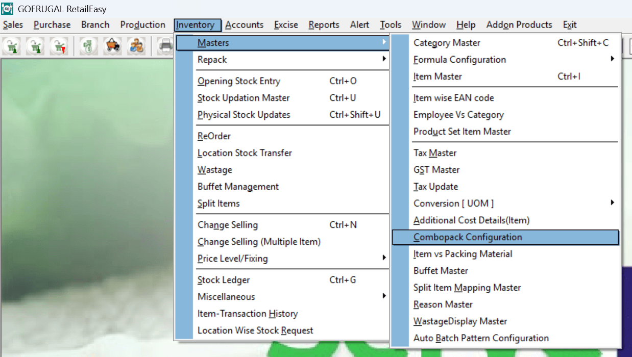 Navigate to Inventory > Masters > Combopack Configuration.