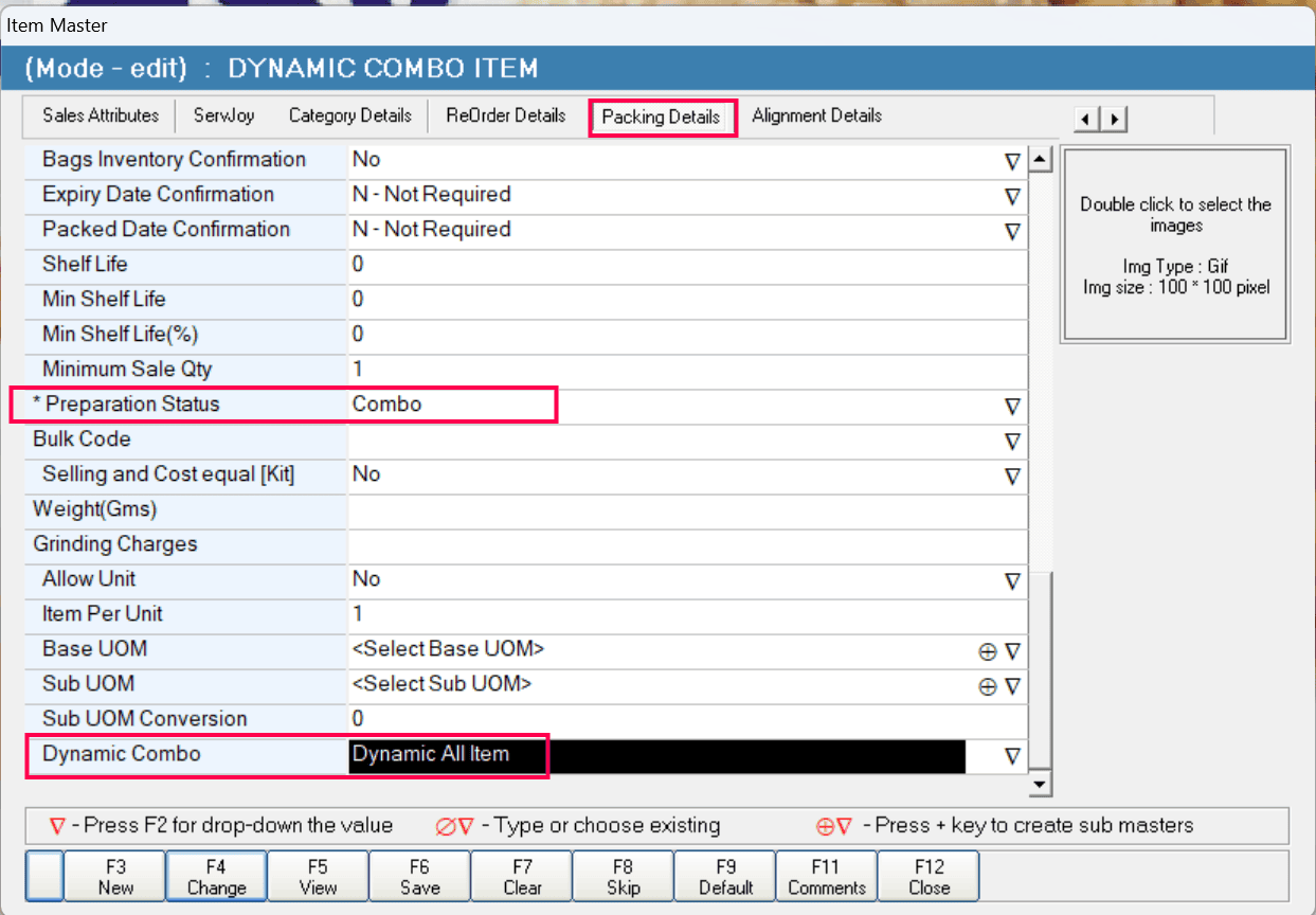 Under Packing Details, set the Preparation Status to Combo and set Dynamic Combo to Dynamic All Items.