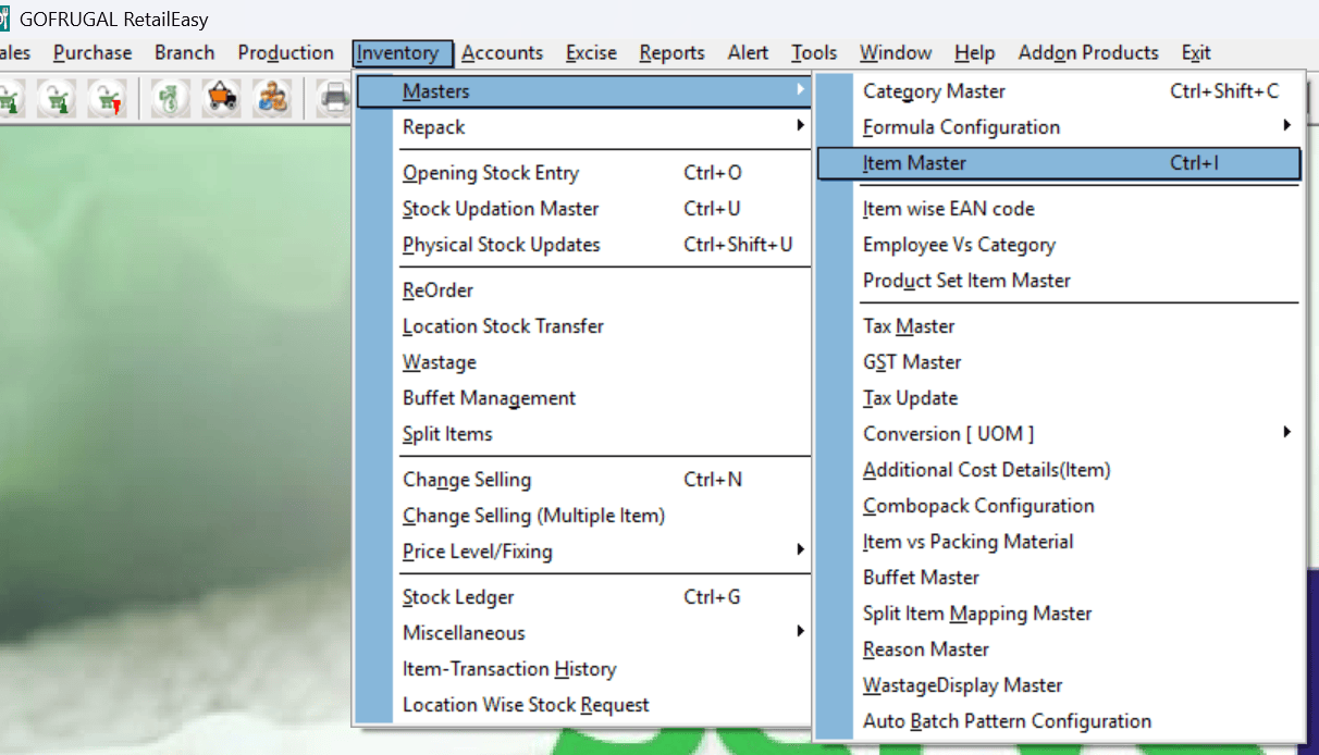 Navigate to Inventory > Masters > Item Master.
