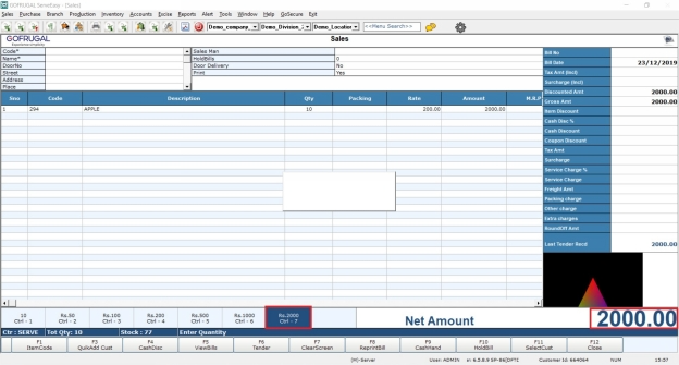 To use this during a sale, click on the desired denomination on the billing screen.Alternatively, press Ctrl+7 to apply the denomination.