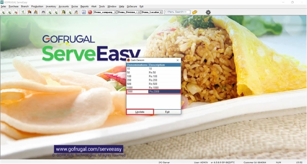After adding the denominations, save the changes.