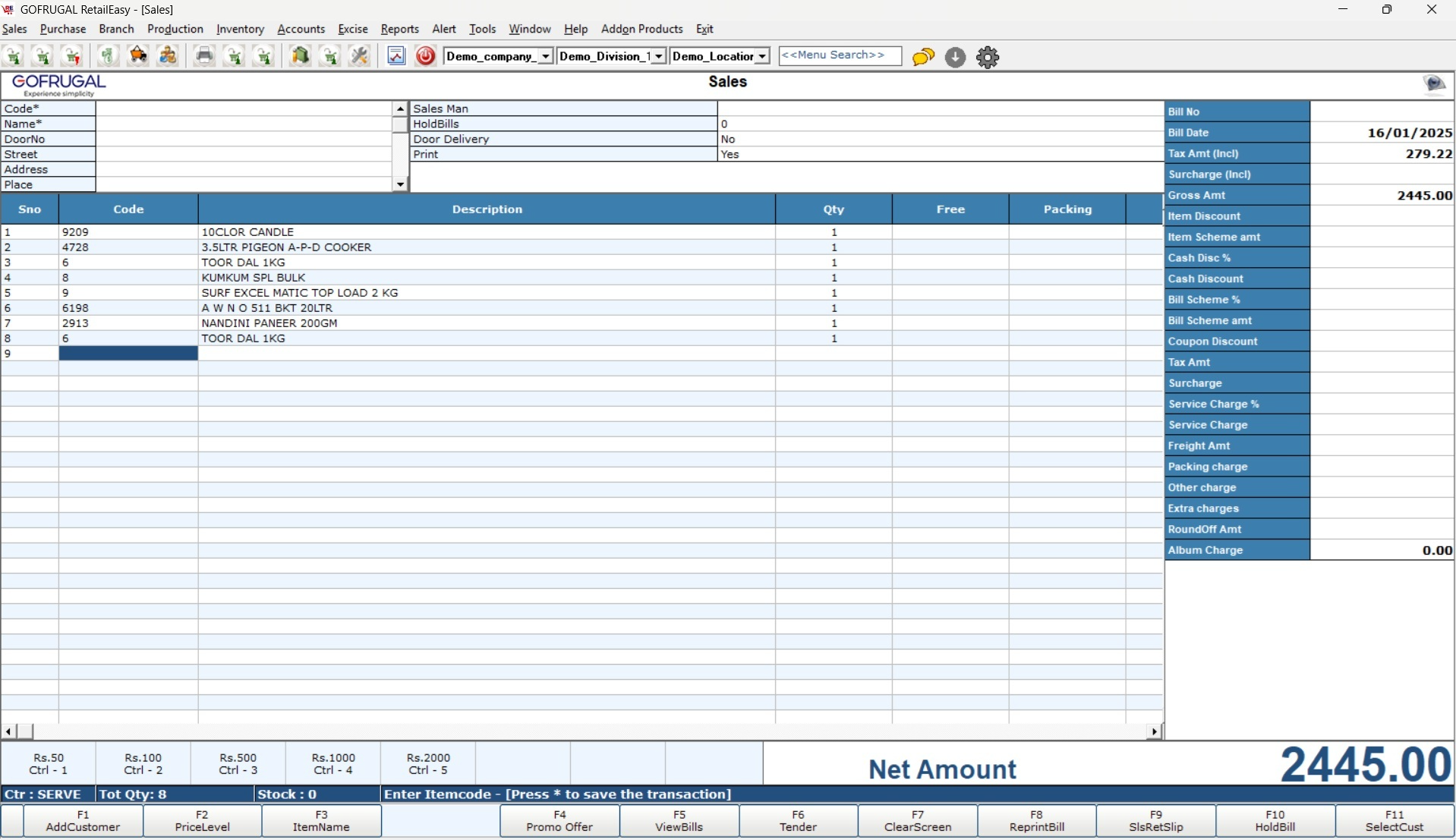 Begin the billing process by entering the sale details on the bill entry screen.